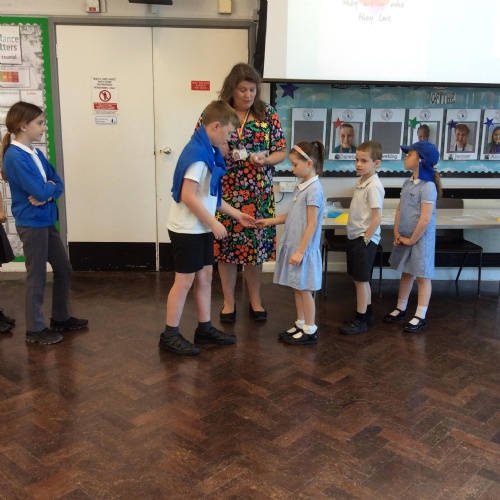 As we are the longest standing EARA group in the Primary Network, we were asked to present the EARA badges to the two new schools which have now joined our network and shake their hand to welcome them.