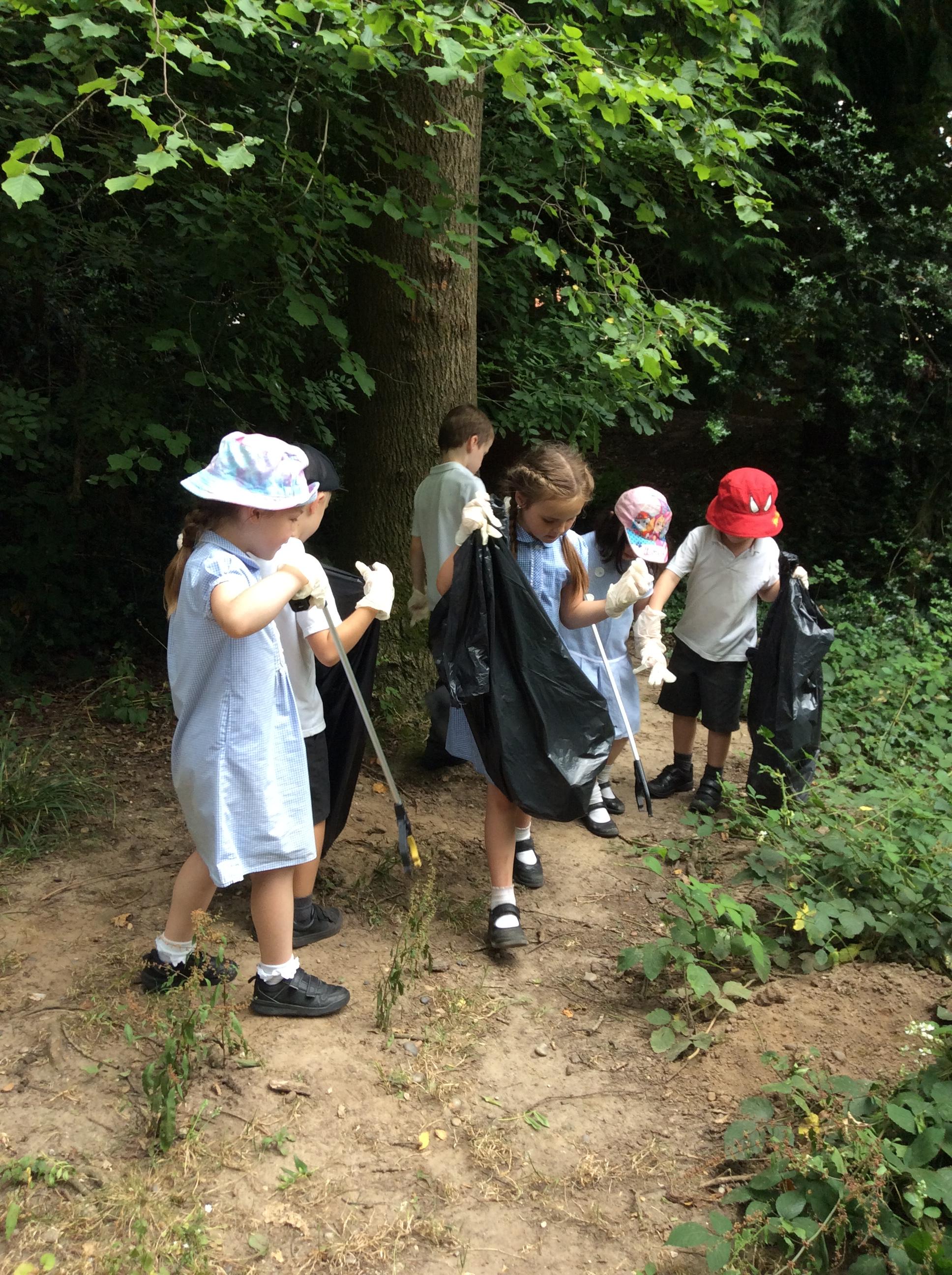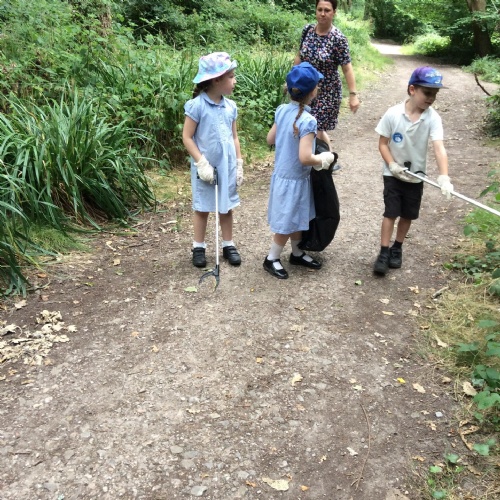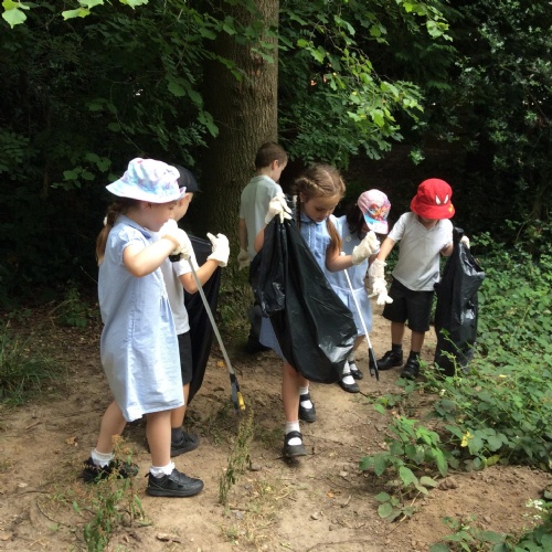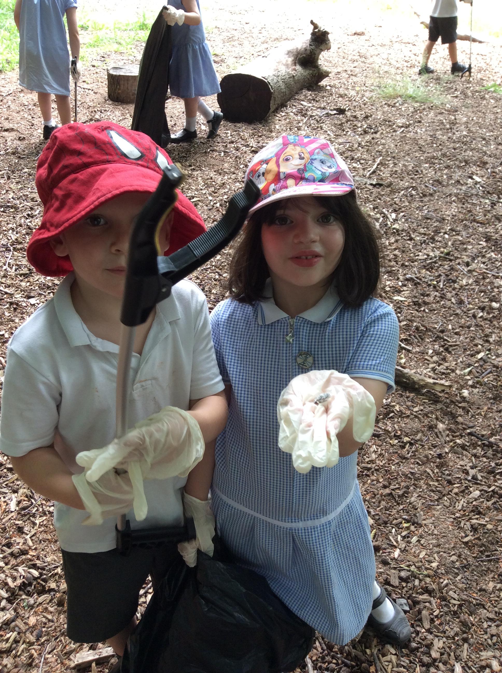Towards the end of term, the EARA group went on a litter up around Stoke Park Woods. Our focus and journey this year has been mostly around the environment and sustainability and therefore it was nice to finish on a practical job of clearing some of the rubbish, which was decided by the children themselves. So, armed with litter grabbers and gloves, we couldn't believe how much rubbish we collected. We found bottle tops, plastic gloves, food packets, cardboard and netting, amongst lots of other things!