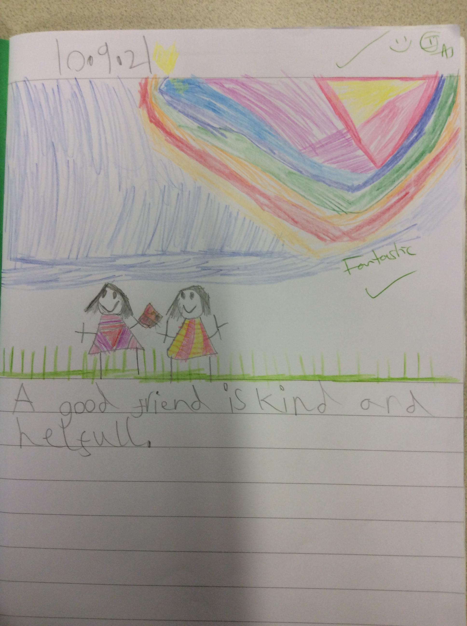 PSHE is taught as part of our weekly curriculum and we follow the NHS My Happy Mind programme. This includes the following modules: brain, celebrate, appreciate, relate, engage. The children learn about their brain and how it helps them. They learn about strategies such as 'happy breathing', the benefits of calming strategies and how to use them. They find out about Character Strengths that make us unique and special: Love and Kindness, Bravery and Honesty, Teamwork and Friendship, Exploring and Learning, Love of Life and Our World. The My Happy Mind programme helps children to learn about showing appreciation and gratitude, listening to others, looking at different perspectives and building successful friendships. It enables children to learn how to set goals and reflect on their goals.