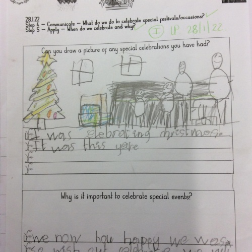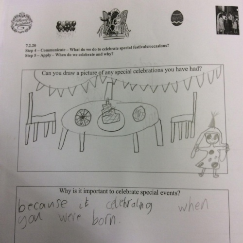 We use the Living Difference IV Agreed Syllabus end of year expectations to assess and monitor children’s learning across each year group and to ensure that progress is made. Evidence of children’s learning and progress is captured in a variety of ways, for example through speaking and listening, drama, dialogue and discussion, as well as through different written activities.